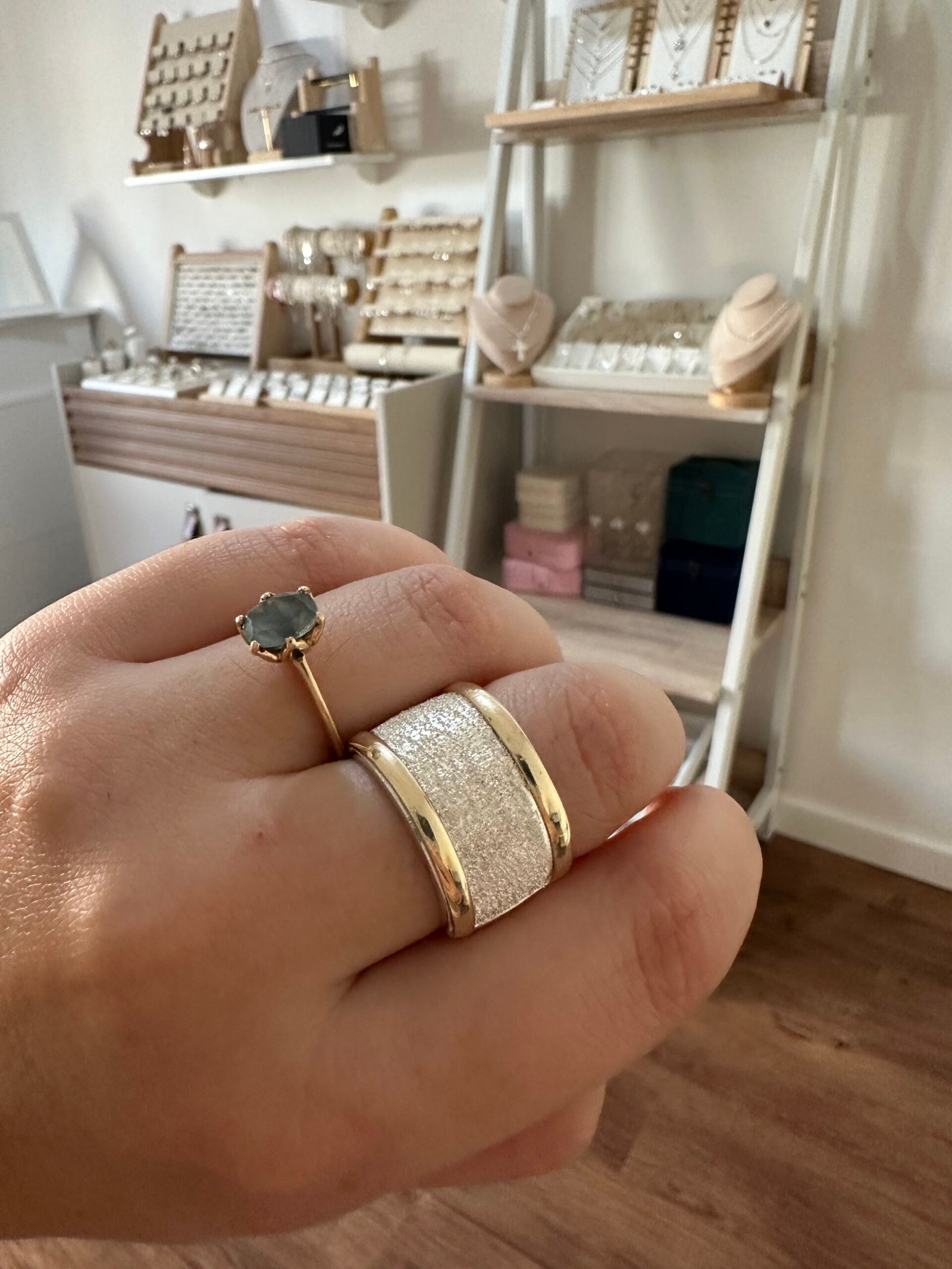 Anillo en plata 925 con double de oro en los bordes de arriba en oro 9, medida de los modelos en mm internos.