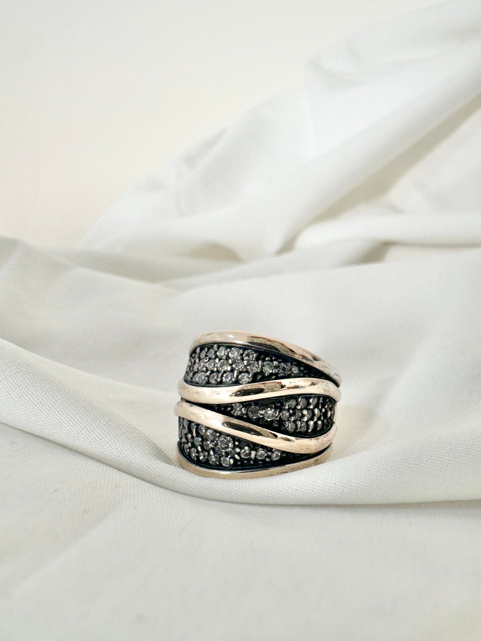 Anillo en plata 925 con oro 9k y circonias. Ancho del anillo 2cm