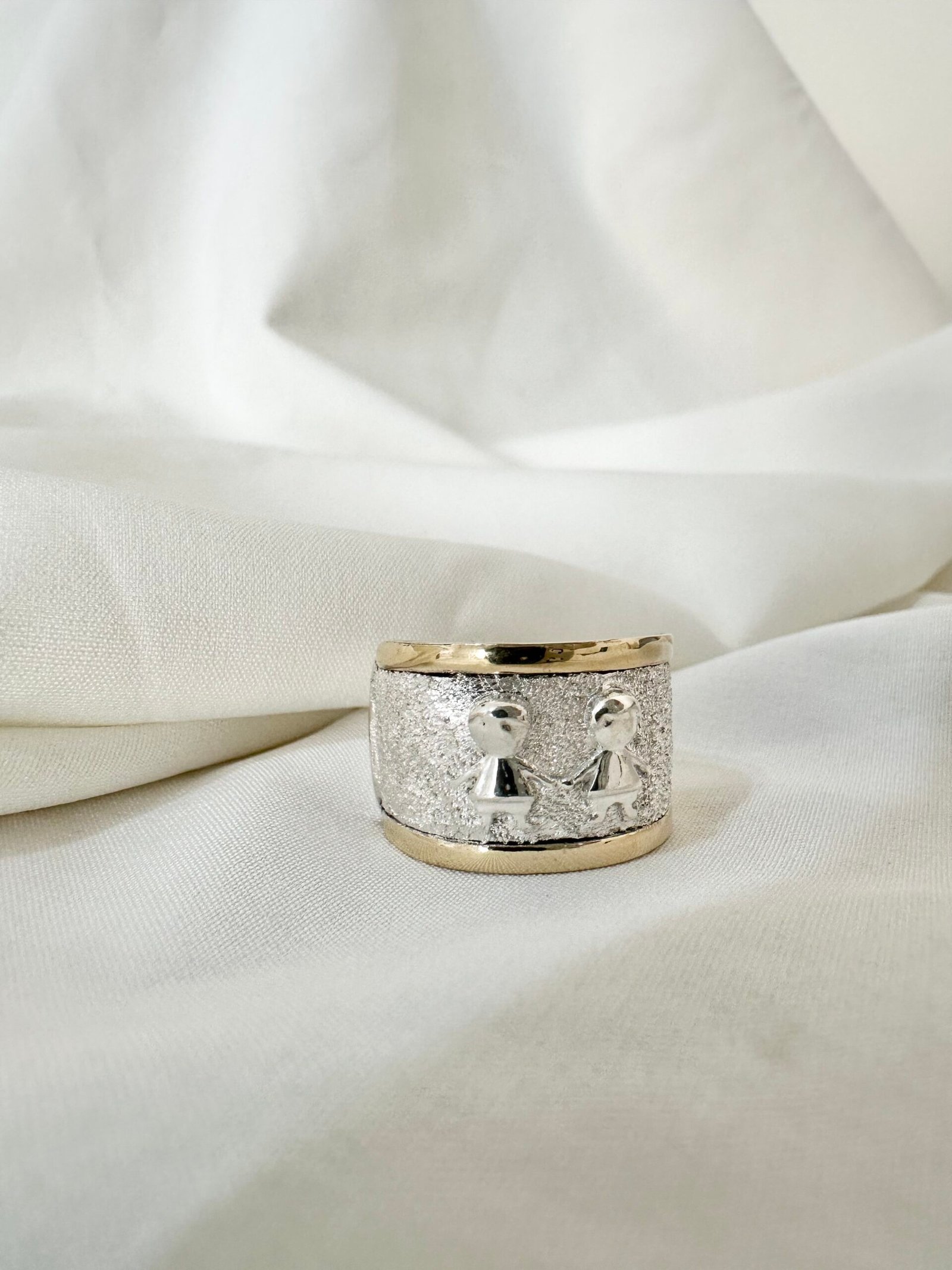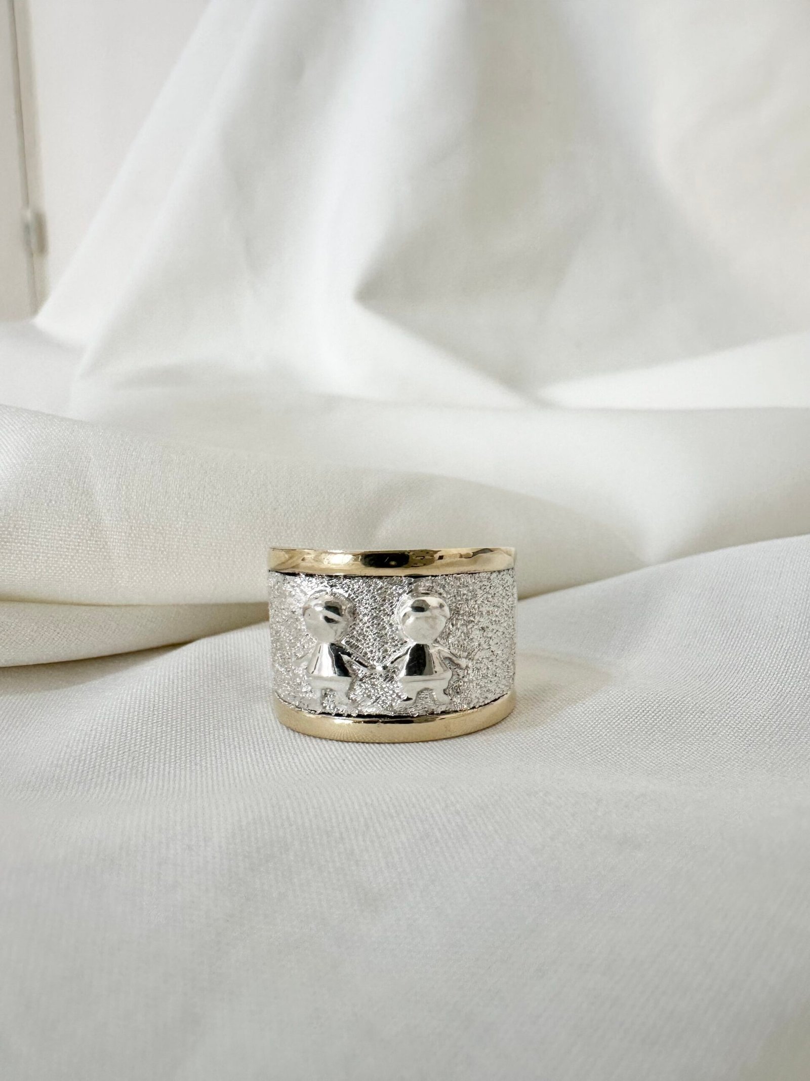 Anillo en plata 925 con apliques en oro 9, dos nenes.