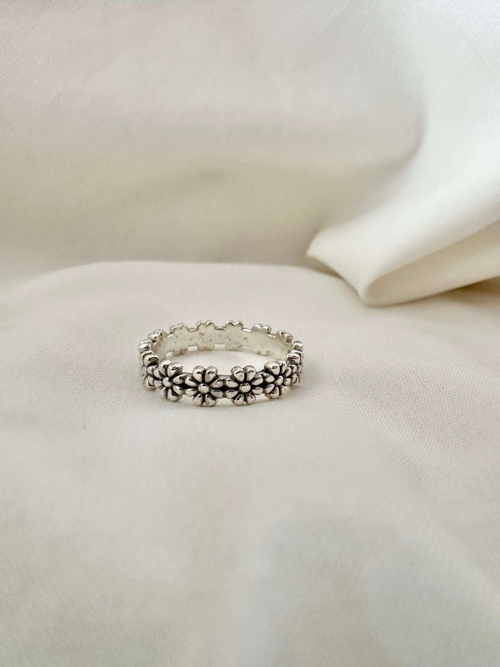 Anillo en plata 925 , todo flores macizo, talle en mm internos.