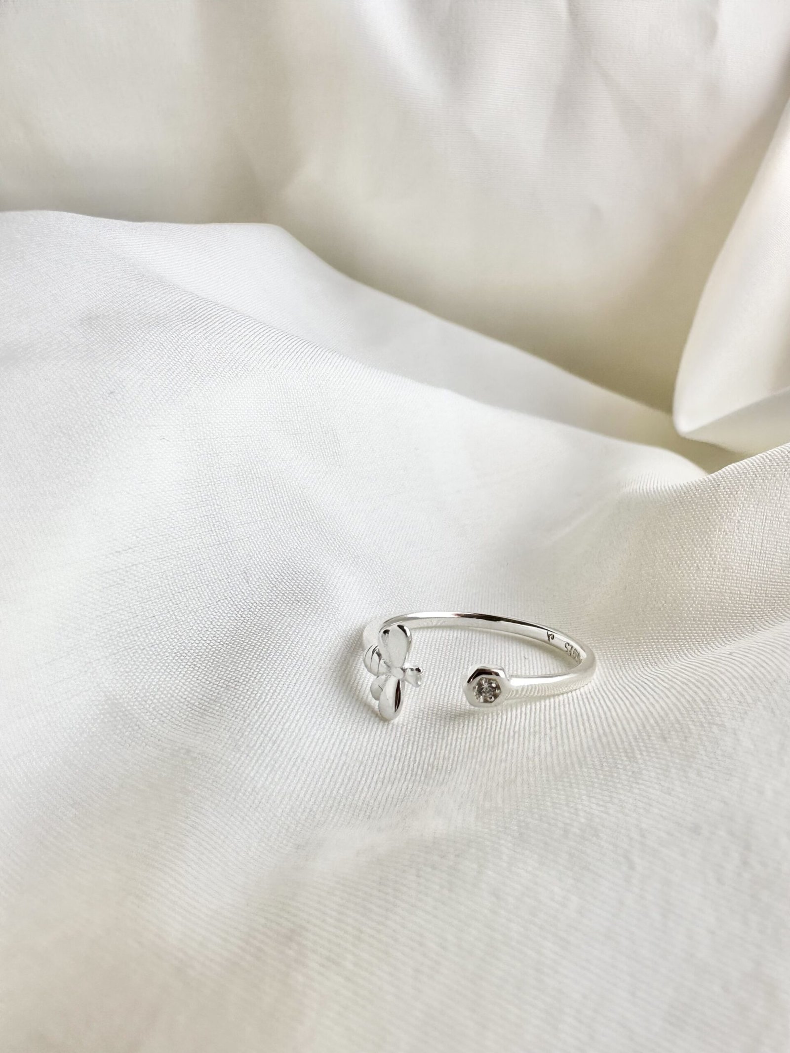 Anillo libelula con circona del otro lado, en plata 925, regulable.