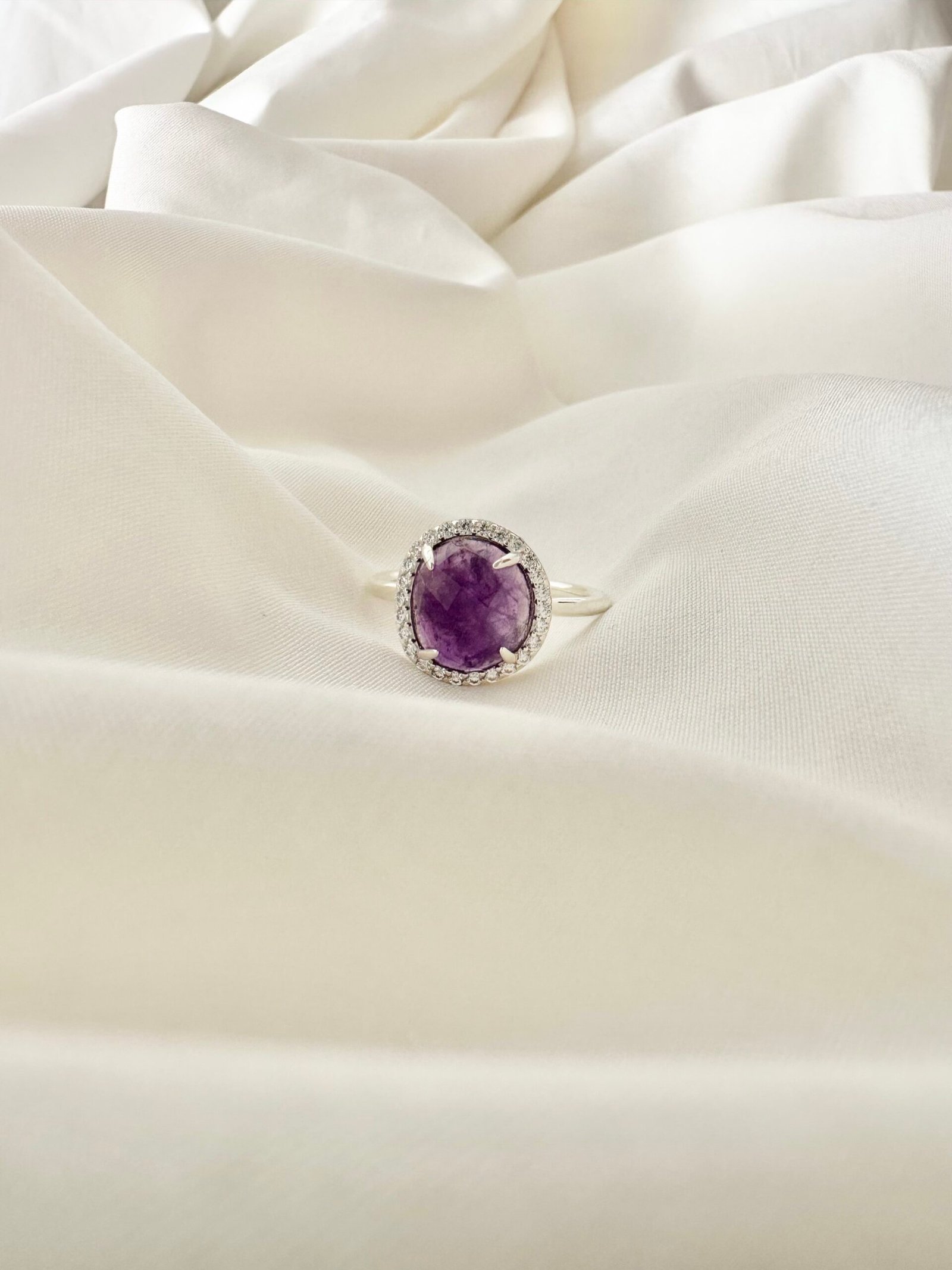 Anillo en plata 925 con circonia en el centro, cuerpo del anillo redondeado.