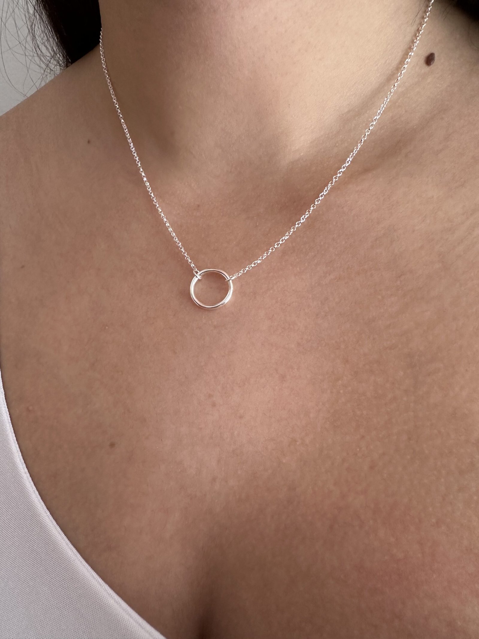 Conjunto en plata 925, con cadena en mini rolo. Largo de la cadena 45cm