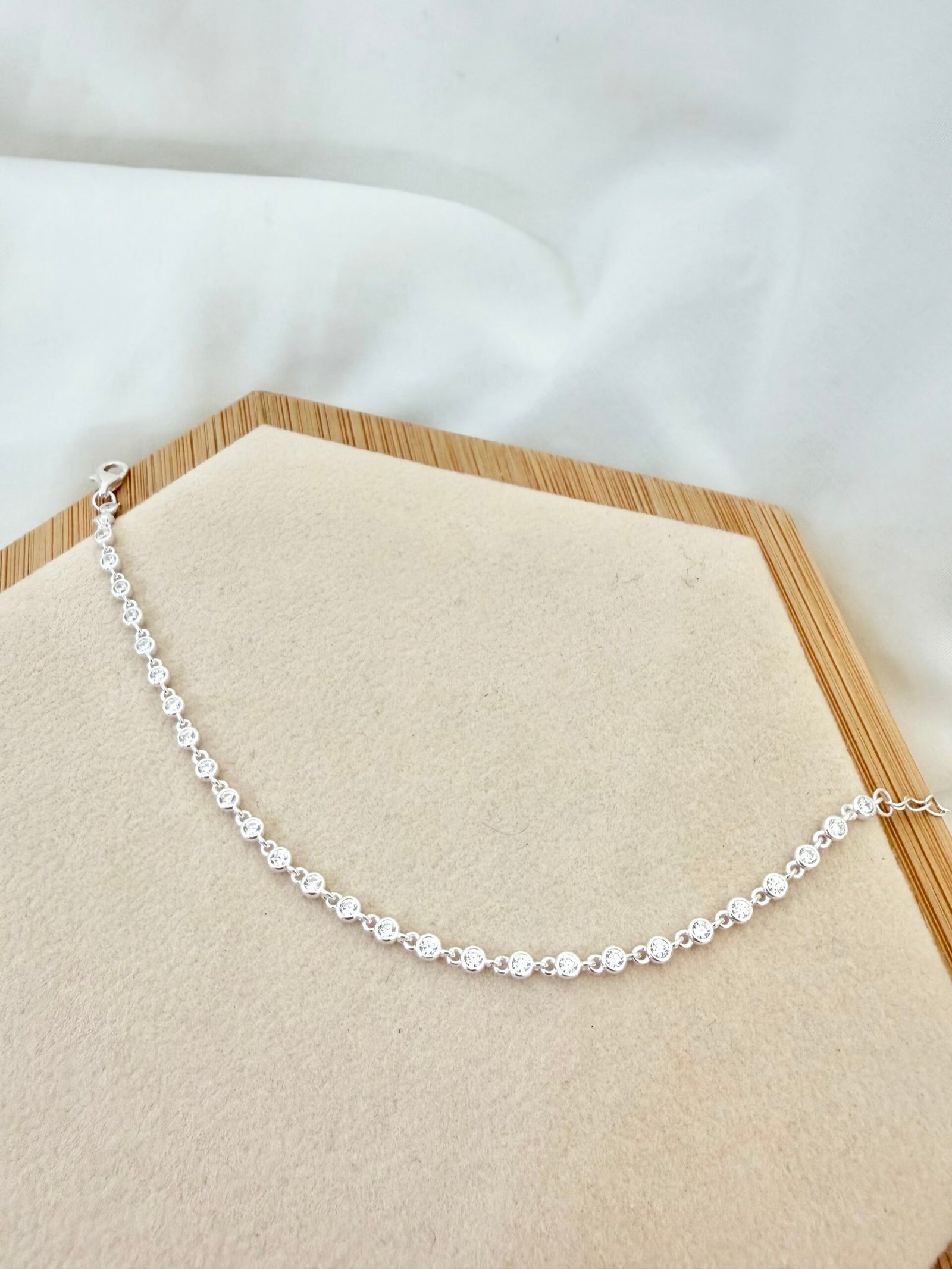 Pulsera en plata 925 , cadena cola de ratón con bolitas. Largo regulable con un extensor.